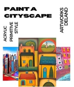 Join in a unique adventure as we embark on a journey to paint a captivating cityscape in primitive-style art! In this dynamic and inspiring class, you’ll discover the joy of creating a vibrant and energetic cityscape using acrylic paint.