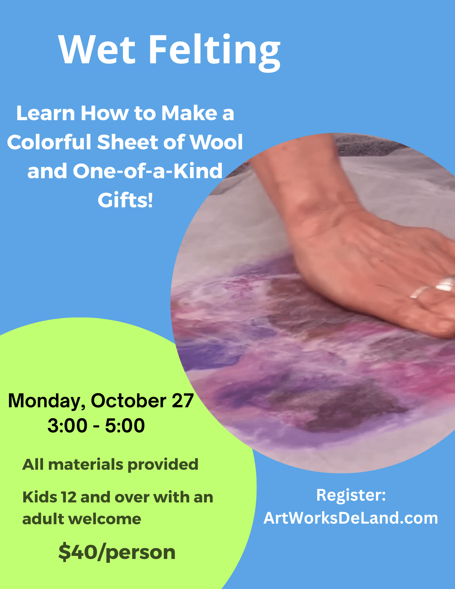 💧✨ Tap into your creativity with Wet Felting at ArtWorks DeLand!